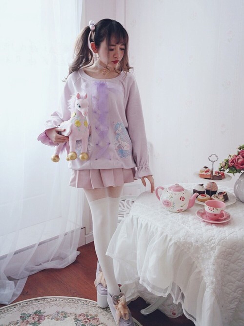 Bobon21のスウェット「ユニコーンレースアップトップス」を使ったコーディネート