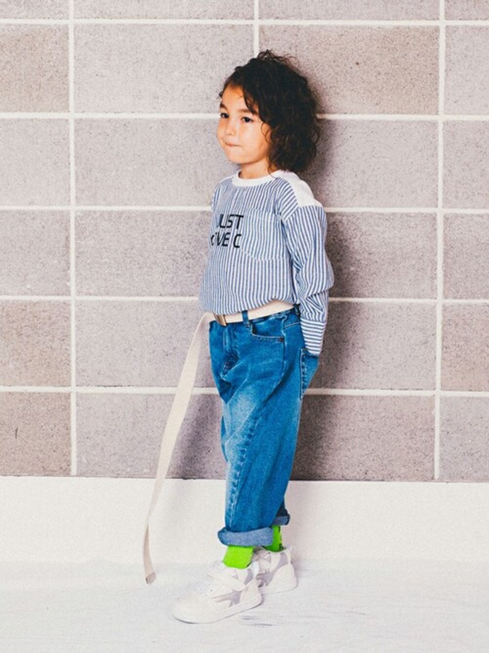 【branshes】 トルネードパンツ ロールアップで足元がスッキリ★ カラーソックス×スニーカーで カジュアルなスタイルに仕上がります◎ 身長:108㎝ 着用:110cm