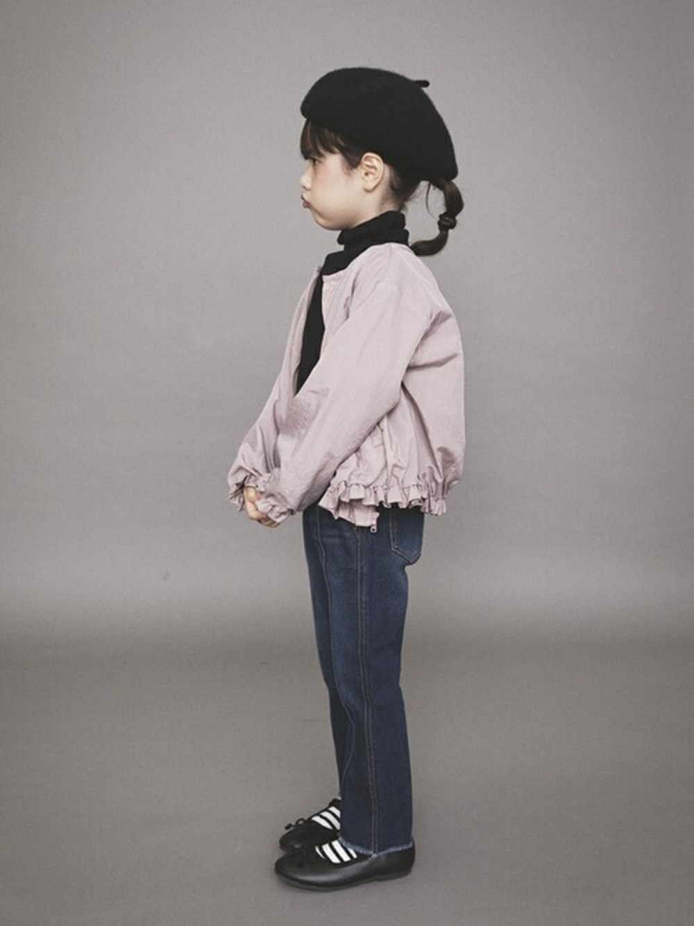 【branshes】 ノーカラージャケット 軽くてボリューミー♡ パンツと合わせて ちょうどいい感じの丈感です♪ 身長:106.5㎝ 着用:110cm