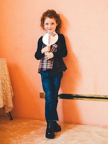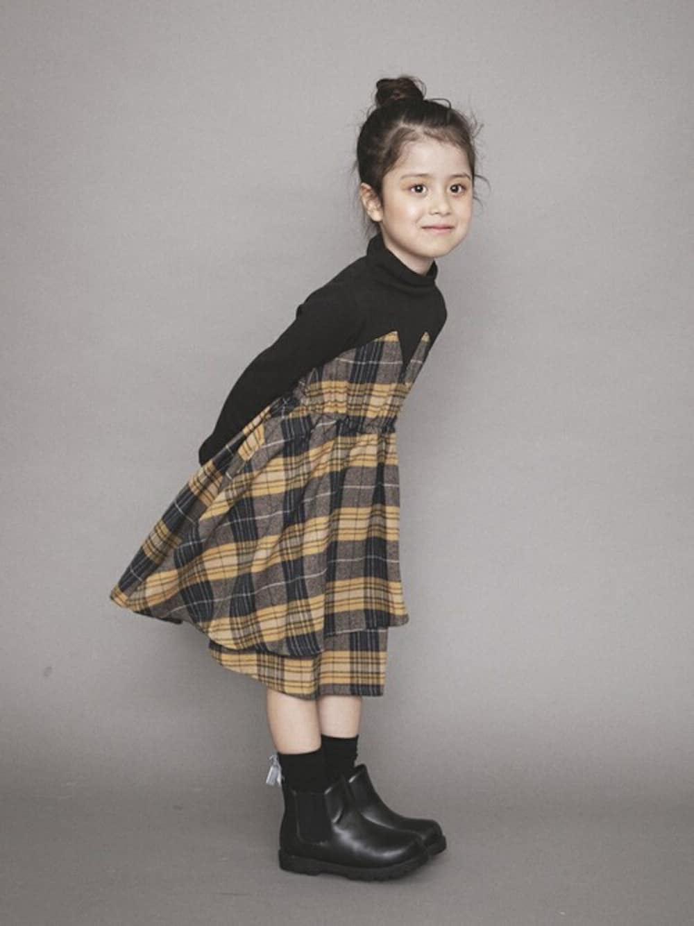 【branshes】 ワンピース大好き♡ チェックも大好き♡ ボトルネックと落ち着いたチェックのカラーで 大人女子の仲間入り♪ ※ブーツは近日発売予定 身長:106.5㎝ 着用:110cm
