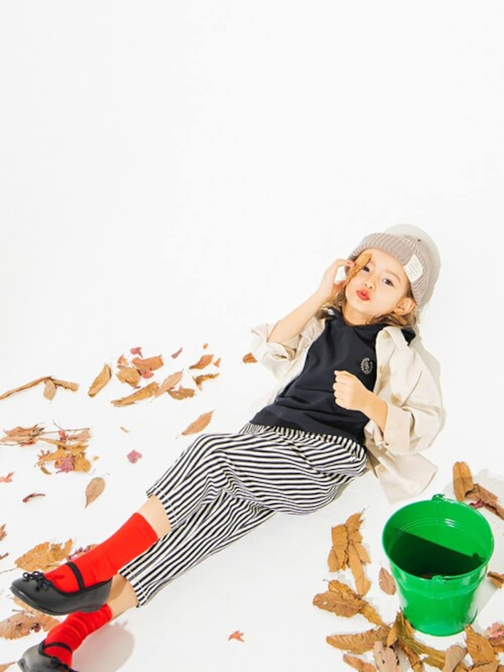 【branshes】 寝ころんだってへっちゃら♪ ガーデナーテーパードパンツは そんな元気ガールにも◎ 足元は赤などの大胆なカラーがおすすめです♪ 身長:109cm 着用:110cm