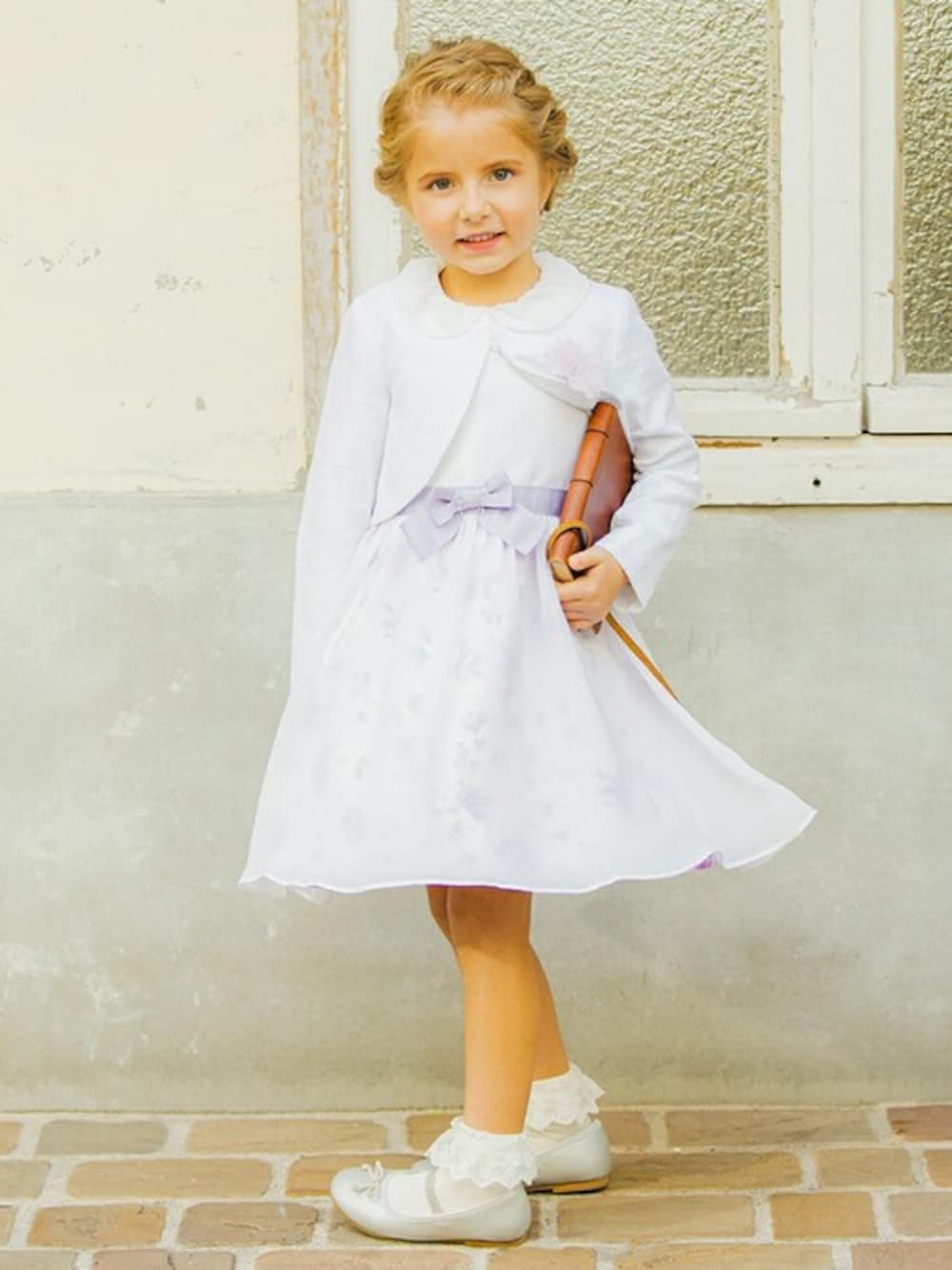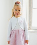 【キメ服】花柄ジャンパースカート 女の子が大好きなラベンダーカラー ジャケットを合わしても、1枚でも、 大きなリボンがコーディネートを まとめてくれます。 身長:110cm 着用:110cm