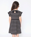 【branshes】 フリル半袖ワンピース ブラック基調のボーダー柄は ちょっと大人っぽいお姉さんになれちゃいます。 身長:104cm 着用:110cm