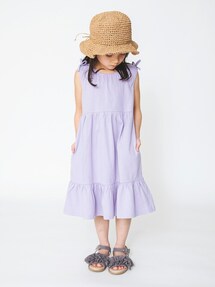 【branshes】 ☆WEB限定☆後ろスリット半袖ワンピース 無地ワンピだけれど後ろのスリットはもちろん ウエストが“きゅっ♪”となってるのが 動きやすさのポイントです◎ 身長:110cm 着用:110cm