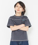【NAUTICA/ノーティカ】 2022 SPRING🌹&SUMMER🌻 『配色ステッチ半袖Tシャツ』 シンプルTシャツにこなれ感がプラス♪ 配色と刺繍カラーがポイントの一枚です☆ 身長:132.5cm 着用:140cm