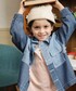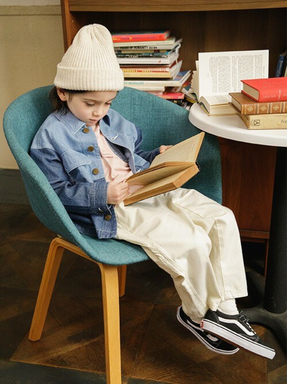 トレンドのバイカラーが目を惹く、5.5オンスデニムのジャケットです。 洗い加工をかけ、少しビンテージ感 フロントのおおきめポケットとバッグの落書き風プリントがポイント!