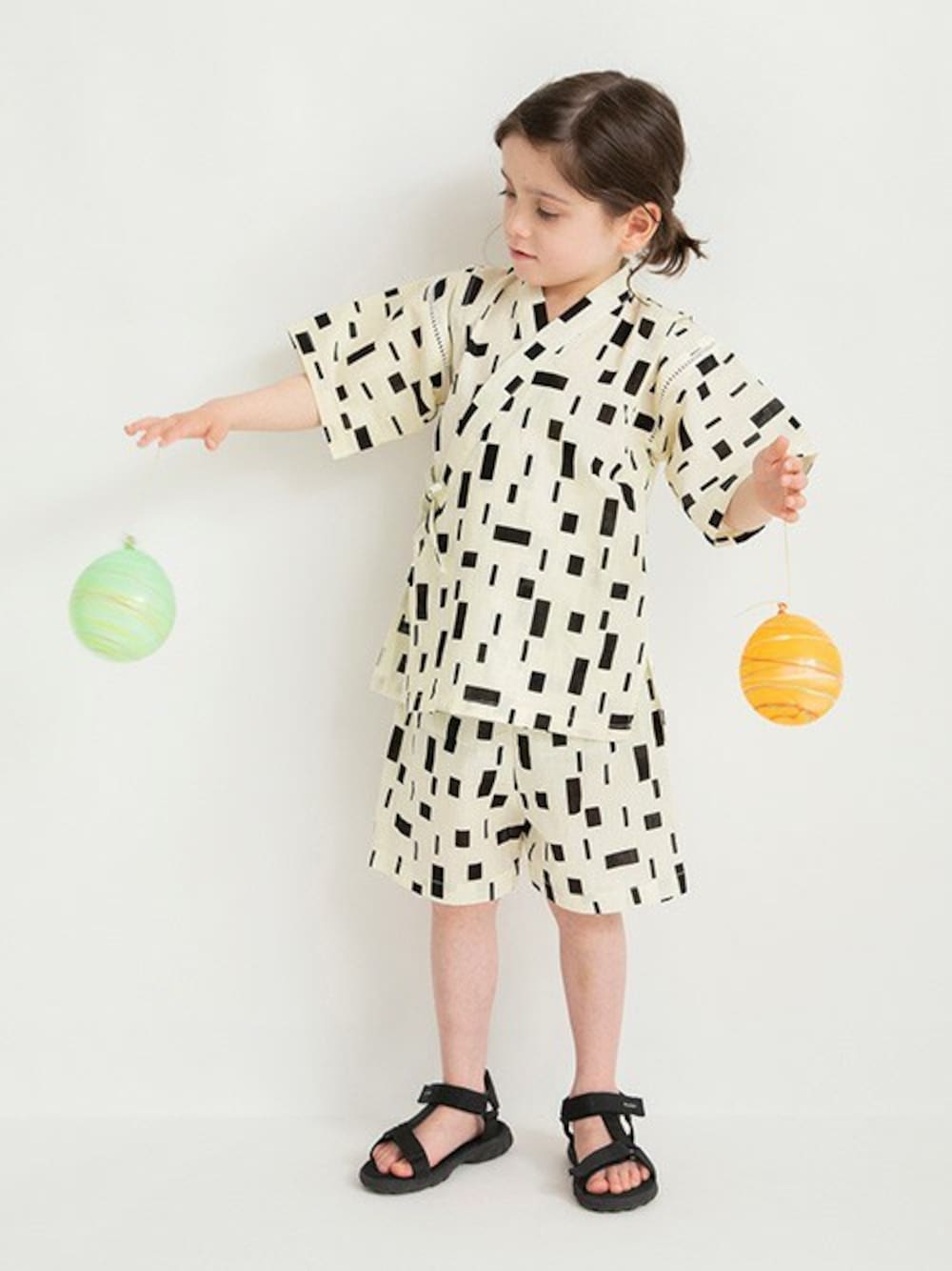 あつい夏!普段使いにもおすすめな甚平が登場! 綿100%素材、ところどころに太い糸を織り込むことで 清涼感のある麻風の生地になっています。 お祭りはもちろん暑い季節の部屋着や寝間着として。 ベビー甚平とのおそろいもオススメ!