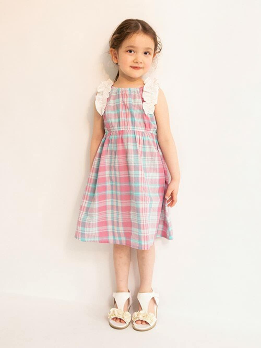\さらっと1枚できまる/ 夏の「主役ワンピ」 肩のフリルが存在感抜群のノースリーブワンピースです。 普段使いはもちろん、ちょっとしたお呼ばれやお出かけにもピッタリ! 姉妹やお友達同士でのお揃いコーデもお楽しみいただけます。