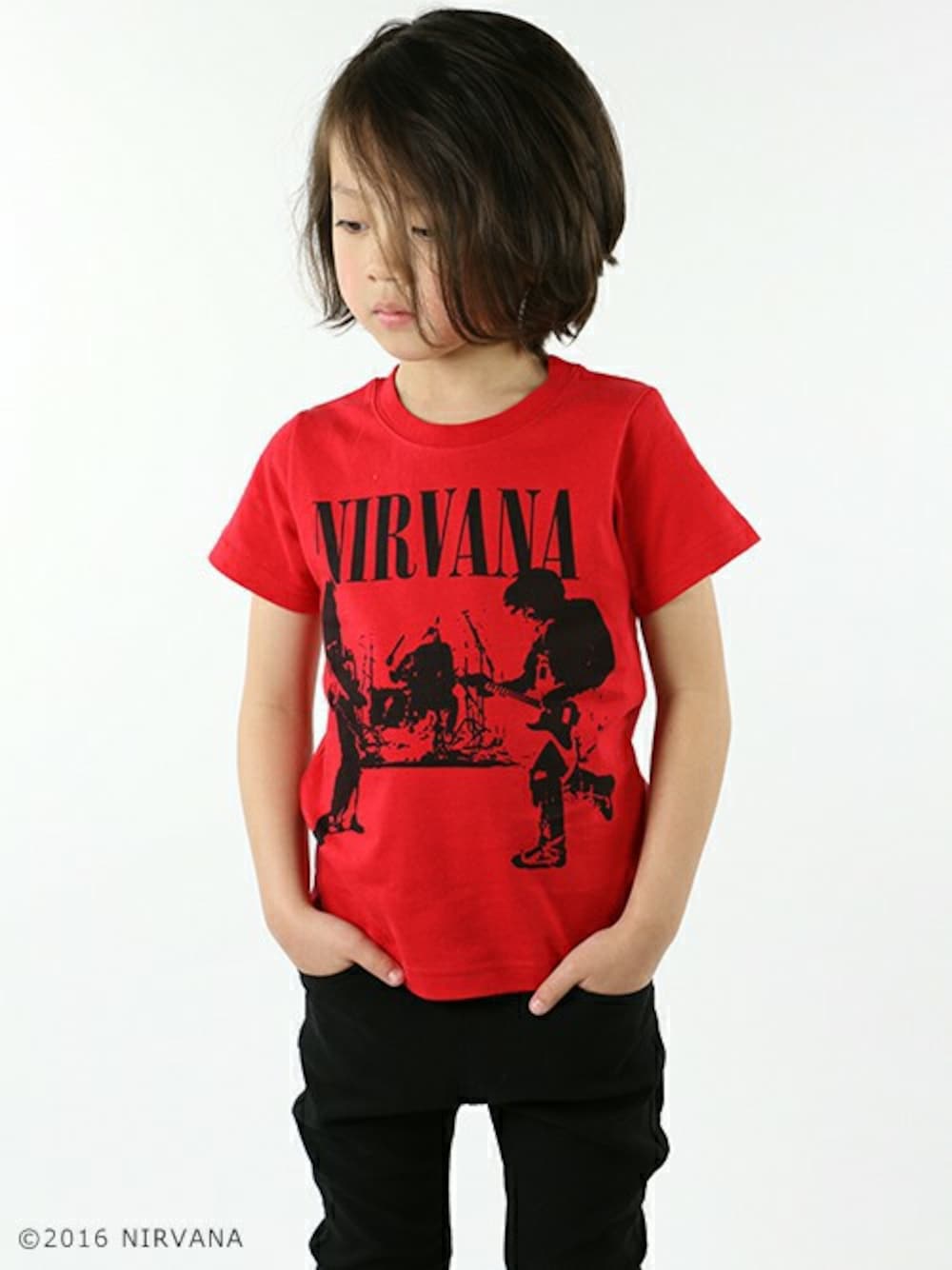 着用サイズ110㎝ NIRVANAコレクションをリリース。モノトーンで描かれたライブ感のあるシルエットがグッとくる1枚です。