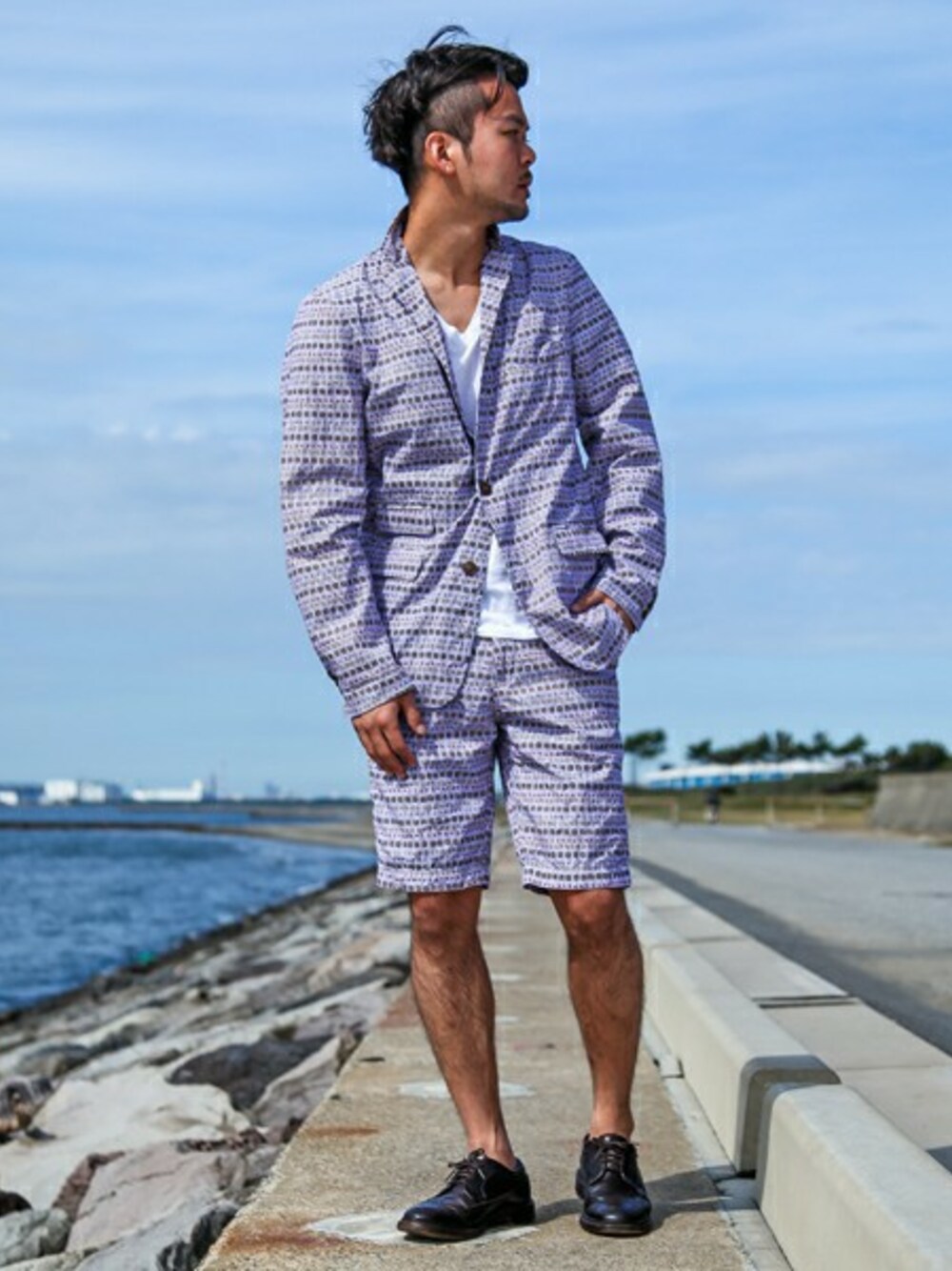 dipのセットアップでコーディネート。 春夏に映える爽やかな柄で、主張しすぎない絶妙なバランスで仕上がっております。 インナーには、FilMelangeの世間知らず..別注Tシャツ。 型崩れしにくく、Vゾーンを少し深くした事でJKTのインナーに最適な1枚に仕上がってます。 是非、お試しください。 【 dip 】ディップ 『dip(ディップ)』のコンセプトは「快適な日常着」。 機能美あふれる洗練されたデザインは、遊び心があり無駄がない、 快適な着心地に繋がる仕上がりです。 【FilMelange】(フィルメランジェ) 2007年春、最高品質のカットソーの作り手として、日本の東京で生まれました。 「原点」「機能美」「簡素」という発想を以って、衣服を着ることの意味や喜び を追求したものづくりをしています。 世間知らず.. http://zozo.jp/_search/search_result.html?p_sid=753&p_type=2