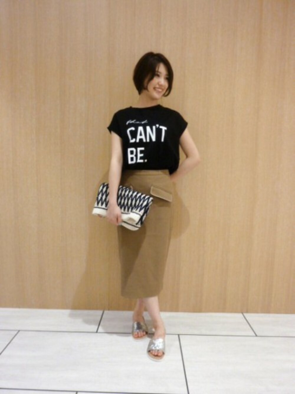 シルエットを意識した女性らしい大人カジュアル。 シンプルなTシャツはカジュアルにデニム合わせはもちろん タイトスカートに合わせて女性らしいシルエットを演出。