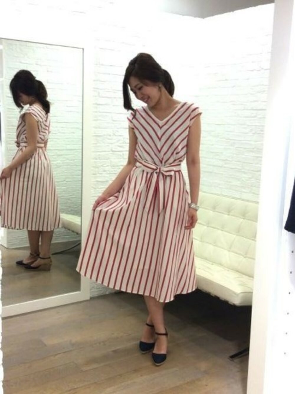 BARNYARDSTORM本部(BARNYARDSTORM 本部)のワンピース「BARNYARDSTORM / Vネックストライプワンピース」を使ったコーディネート