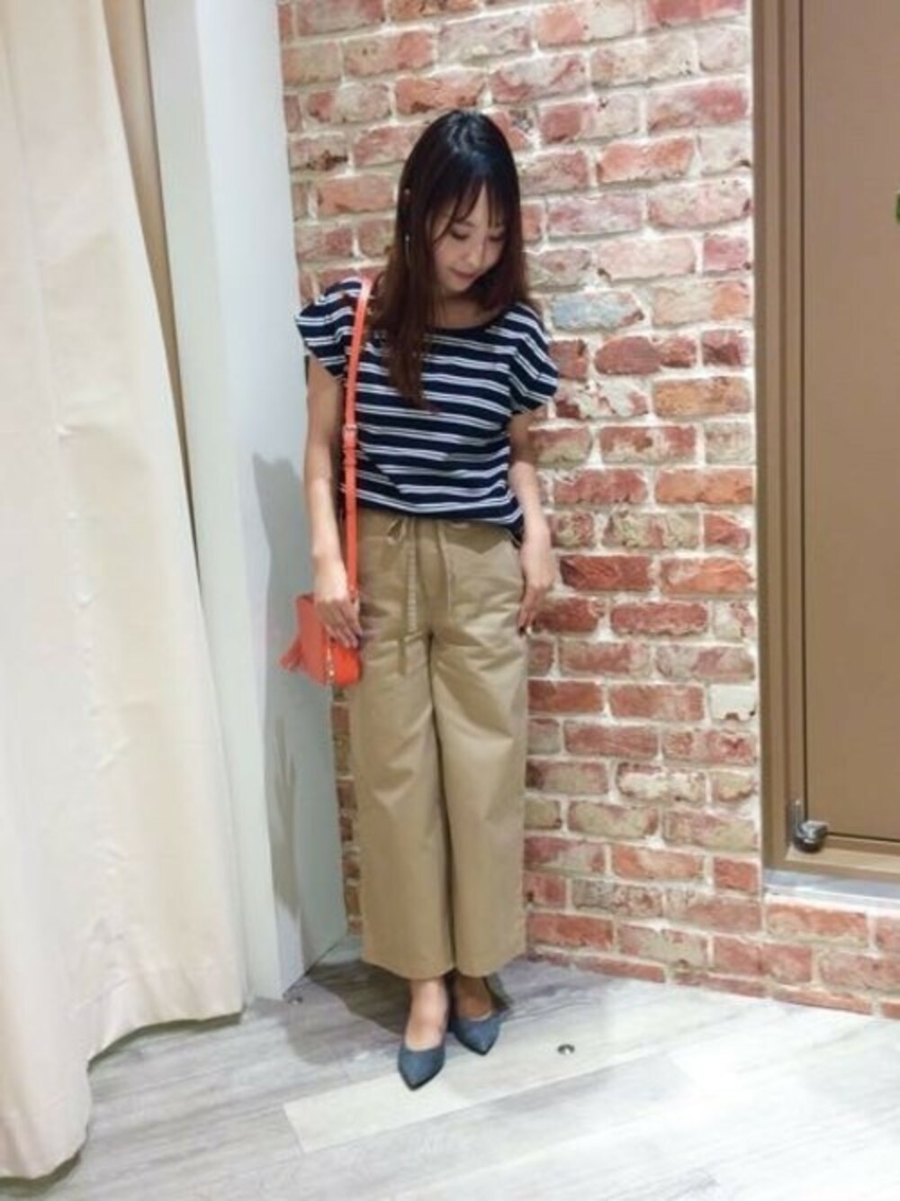 きれいめカジュアルスタイル。 ボーダーカットソーは綺麗めスタイルにも合い、程よくカジュアルダウンしてくれます。