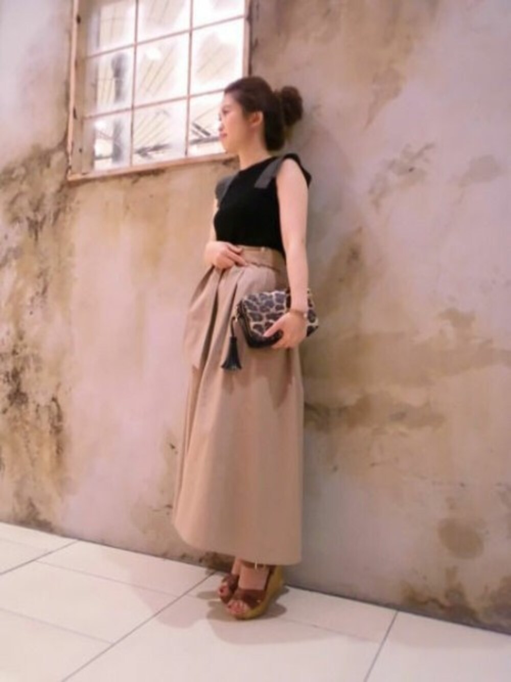シンプルにまとめた女性らしい大人スタイル。 トップスをINした着こなしが素敵です。 シャツやブラウスとあわせたきれいめスタイルもおすすめです。
