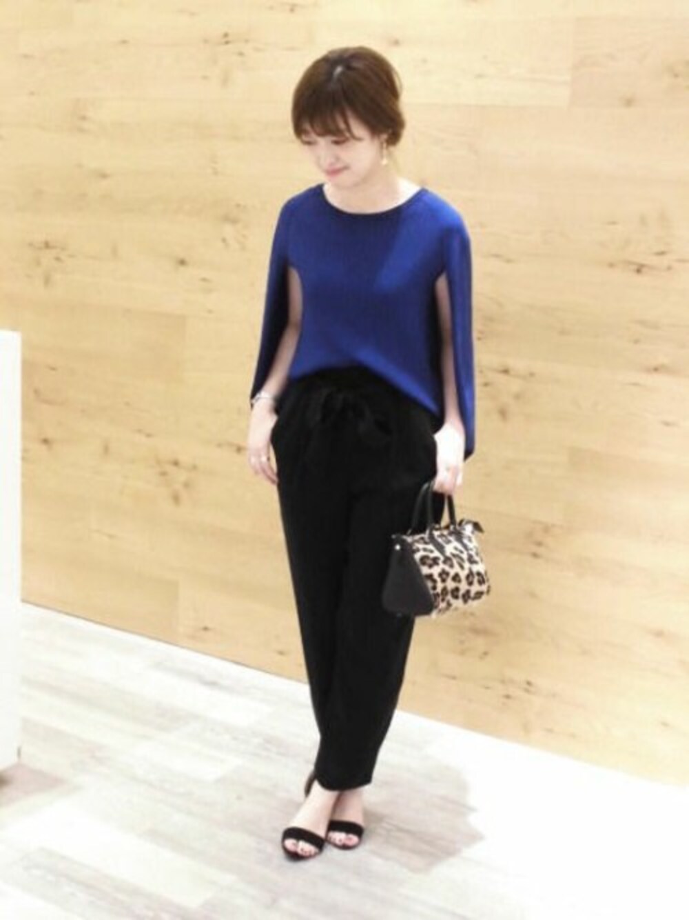 オフィススタイル カーデを肩掛けしたようにケープがくっついているので、ノースリで実際は涼しく着れつつも、 見せたくない二の腕はしっかりカバー。 オフィスや電車での冷房対策~日焼け対策に◎