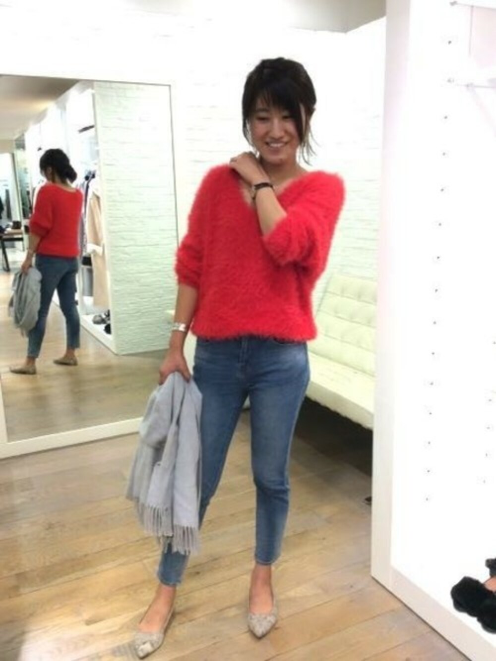 BARNYARDSTORM本部(BARNYARDSTORM 本部)のニット/セーター「BARNYARDSTORM / 【otonaMUSE12月号 佐田真由美さん着用】フラッフィーVネックニット」を使ったコーディネート