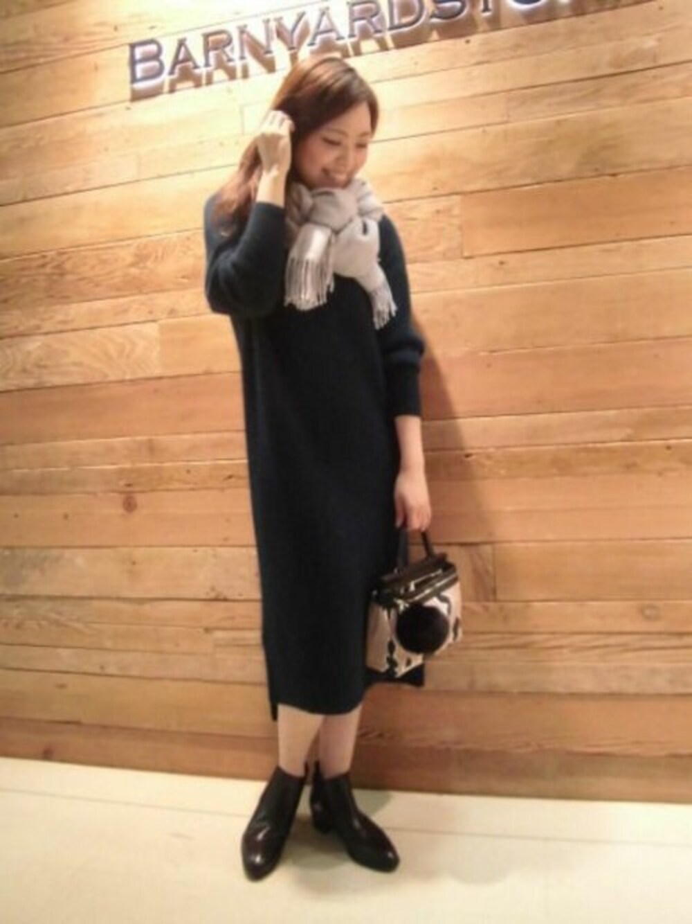 体型カバーできるニットワンピース ラクーンのワンピースは着るだけで季節感がでる優れものです◎