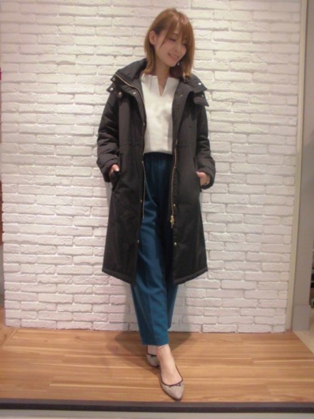 シンプルなデニムスタイル シートダウンを使用し保温性に優れたロングダウンコートをメインに カジュアルなスタイリングでまとめました。 ご自宅でもお洗濯いただけるおすすめアウターです。