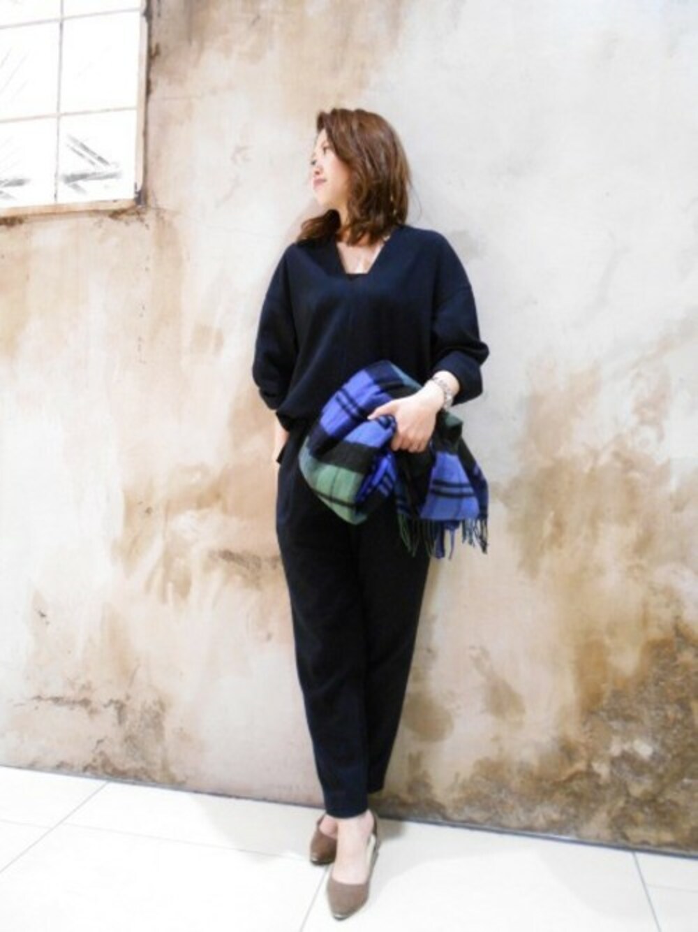 きれいめセットアップスタイル ワントーンでシックにまとめました。 小物でカラーアイテムを取り入れてみました。