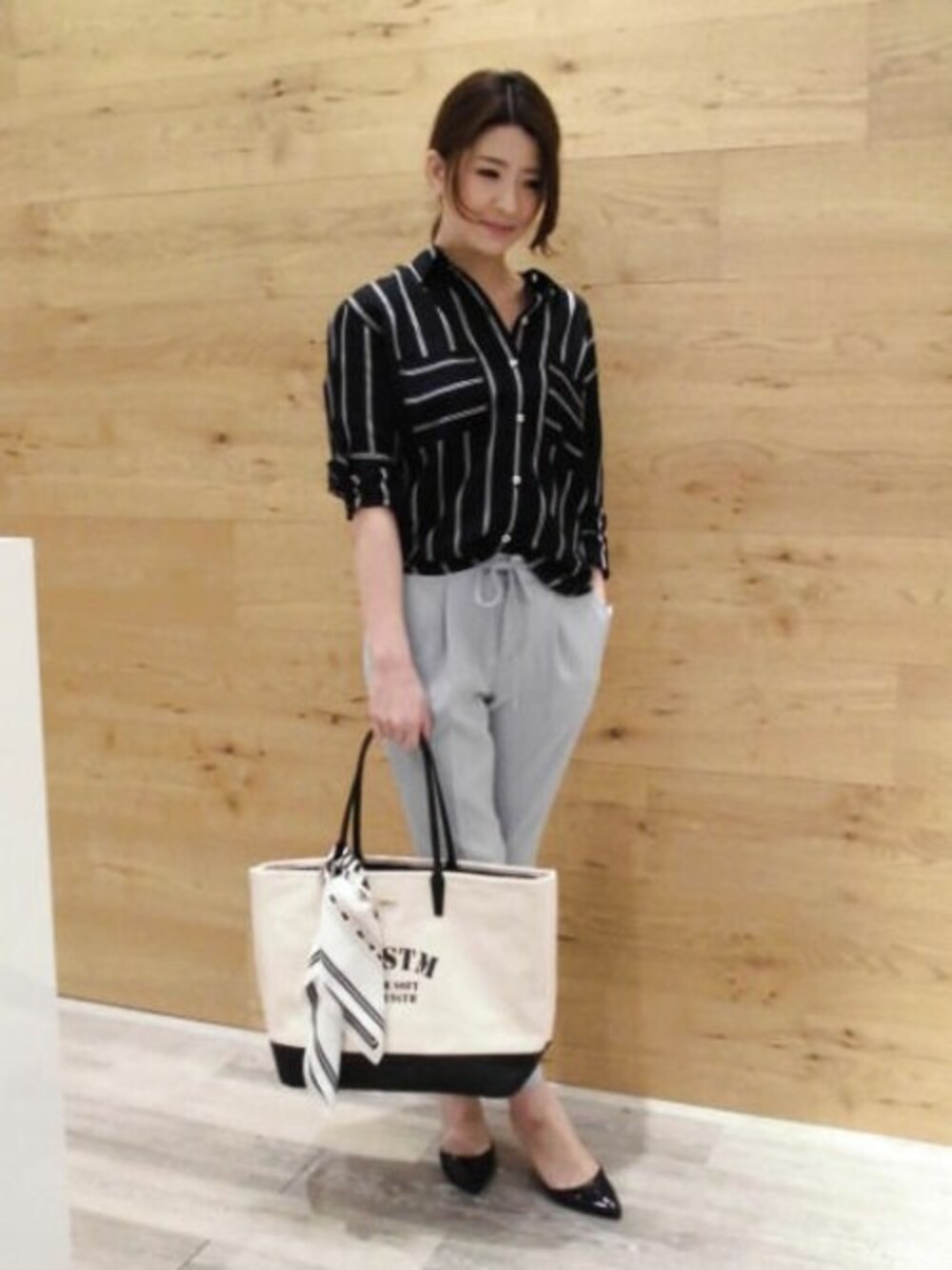 ハンサムなシャツスタイル 上質で洗練されたシルク混のストライプシャツはきれいめな印象に仕上がります。 袖をまくり、襟元を抜いたスタイリングでこなれ感がアップ。 カジュアルなロゴトートとあわせてハンサムなカジュアルスタイルに。