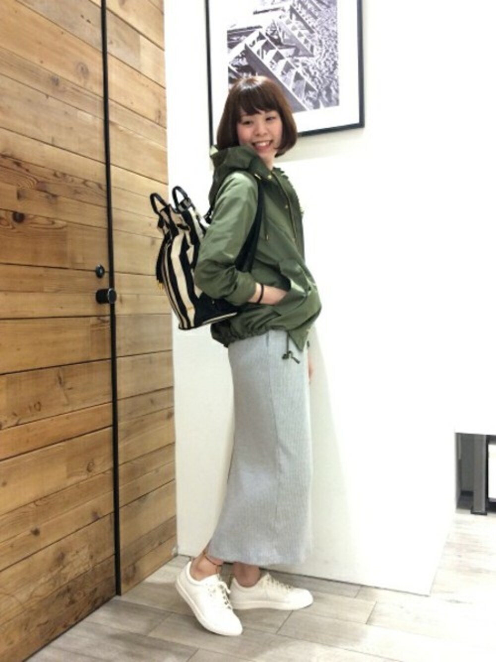 カジュアルワンピーススタイル ドロップショルダーで、体から離れるゆったりとしたサイズ感で着心地◎ 後ろの深めのスリットで女性らしさを。 スニーカーとあわせたカジュアルコーデがおすすめです。