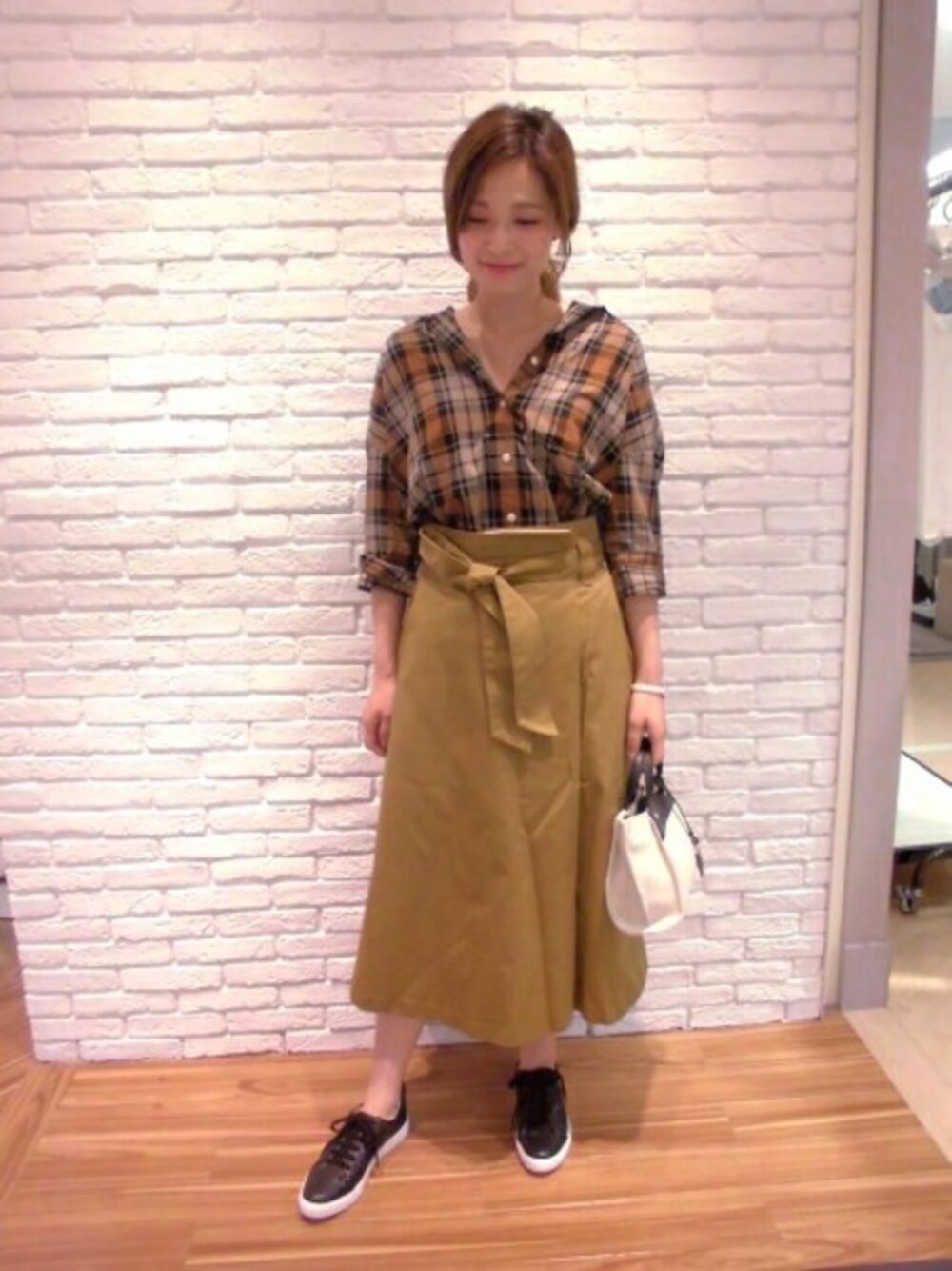ディッキーズとのコラボ、ラップ風のフレアスカート。 女性らしいシルエットできれいめな印象に着用いただけます。 バンヤードストームオリジナルのチェックシャツと合わせ、今から秋まで着れるスタイリングに♪