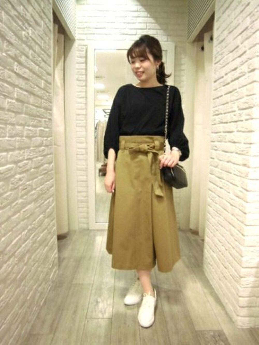 キレイ見えするボリューム袖のシンプルプルオーバーをディッキーズコラボスカートとあわせました。 ディッキーズならではのワーク感を取り入れたカジュアル素材のスカートにキレイ見えするトップスを あわせればハンサムな着こなしに仕上がります。