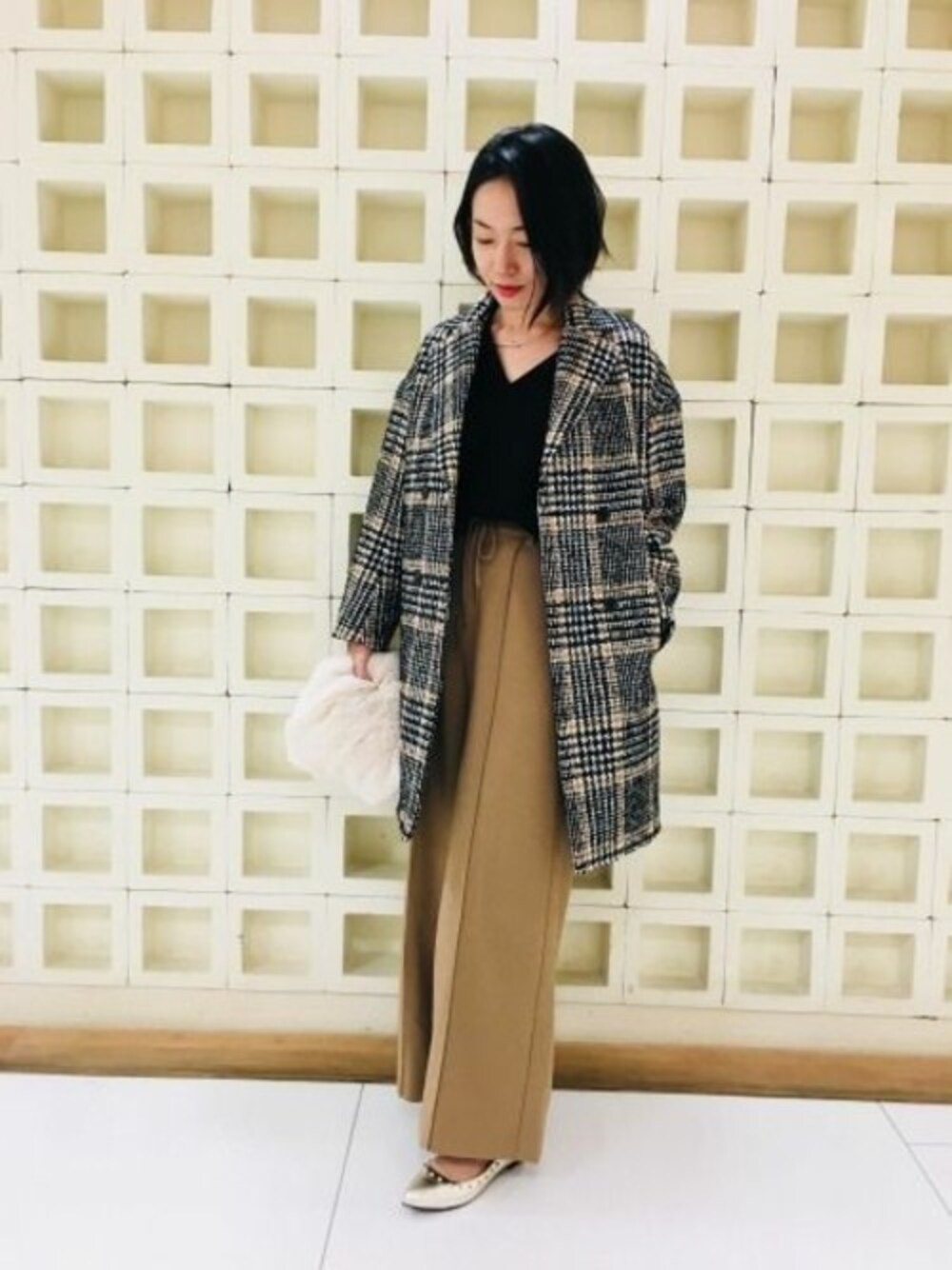 シンプルなパンツスタイルにチェックコートを羽織るだけで こなれ感あるトレンドスタイルに。 一気に秋冬の装いに。