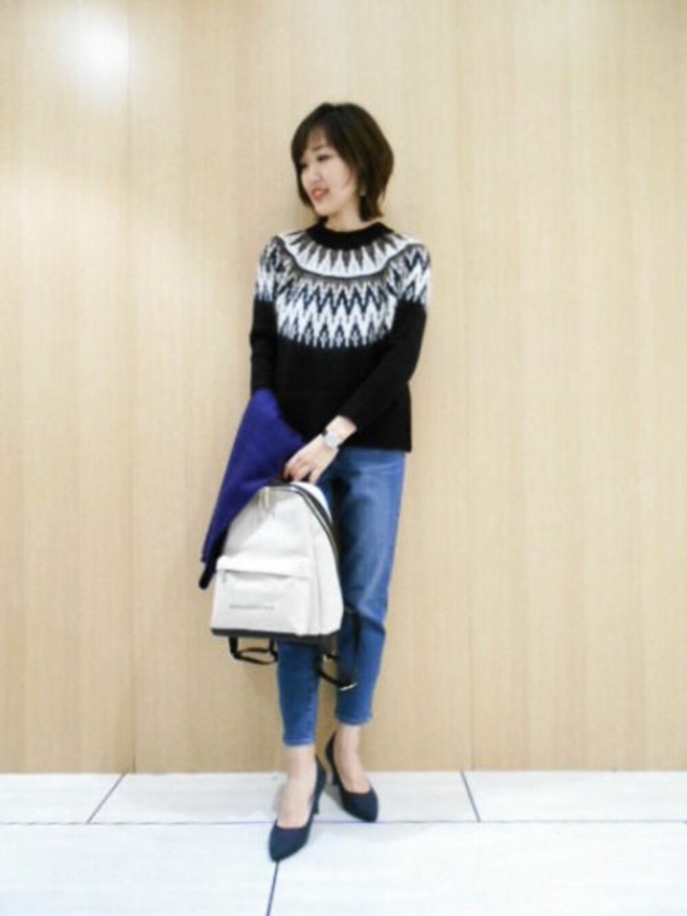 大人のノルディック柄ニットと 裏起毛で暖かいデニム。 秋冬に大活躍のアイテムです。 ストールは大判なので羽織としても使えます。 発色がとても綺麗です。