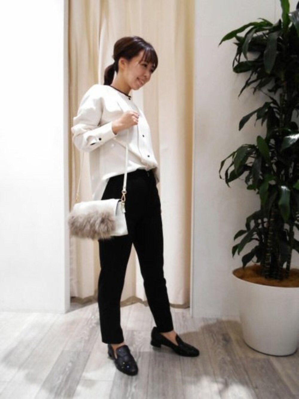モノトーンのシンプルコーデです。 楽ちんなのにきれい目の印象なので通勤でも使えます。