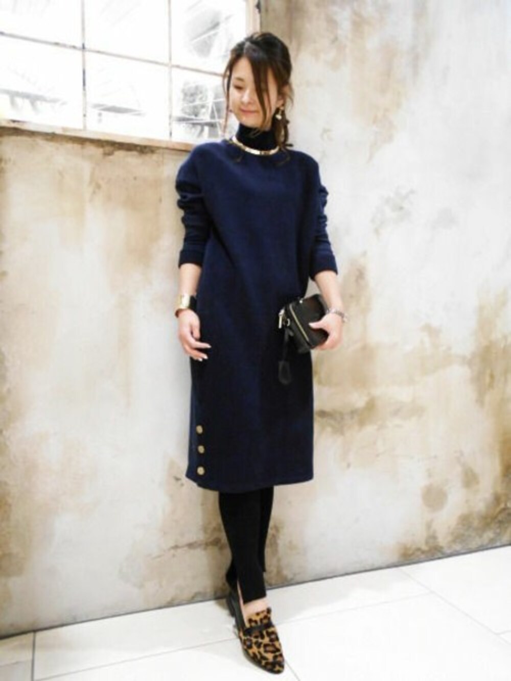 裾のボタンがポイントのワンピースは素材的にも扱いやすく 動きやすいです。 1枚でもレギンスと合わせても○