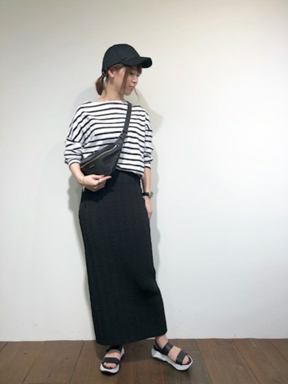 ボーダートップスとセットアップのスカートで モノトーンコーデです♪