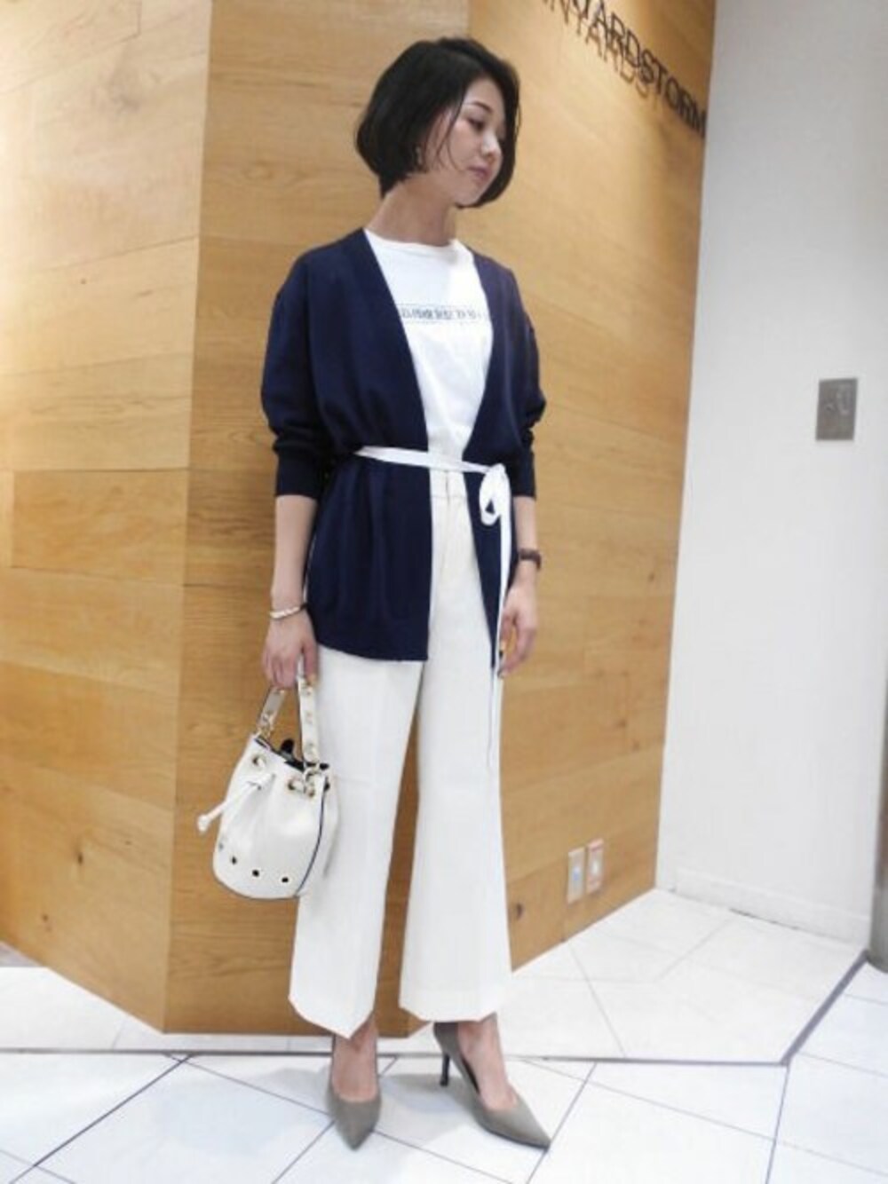 白とネイビーのコーデです。 上品な雰囲気になるのでおすすめです。