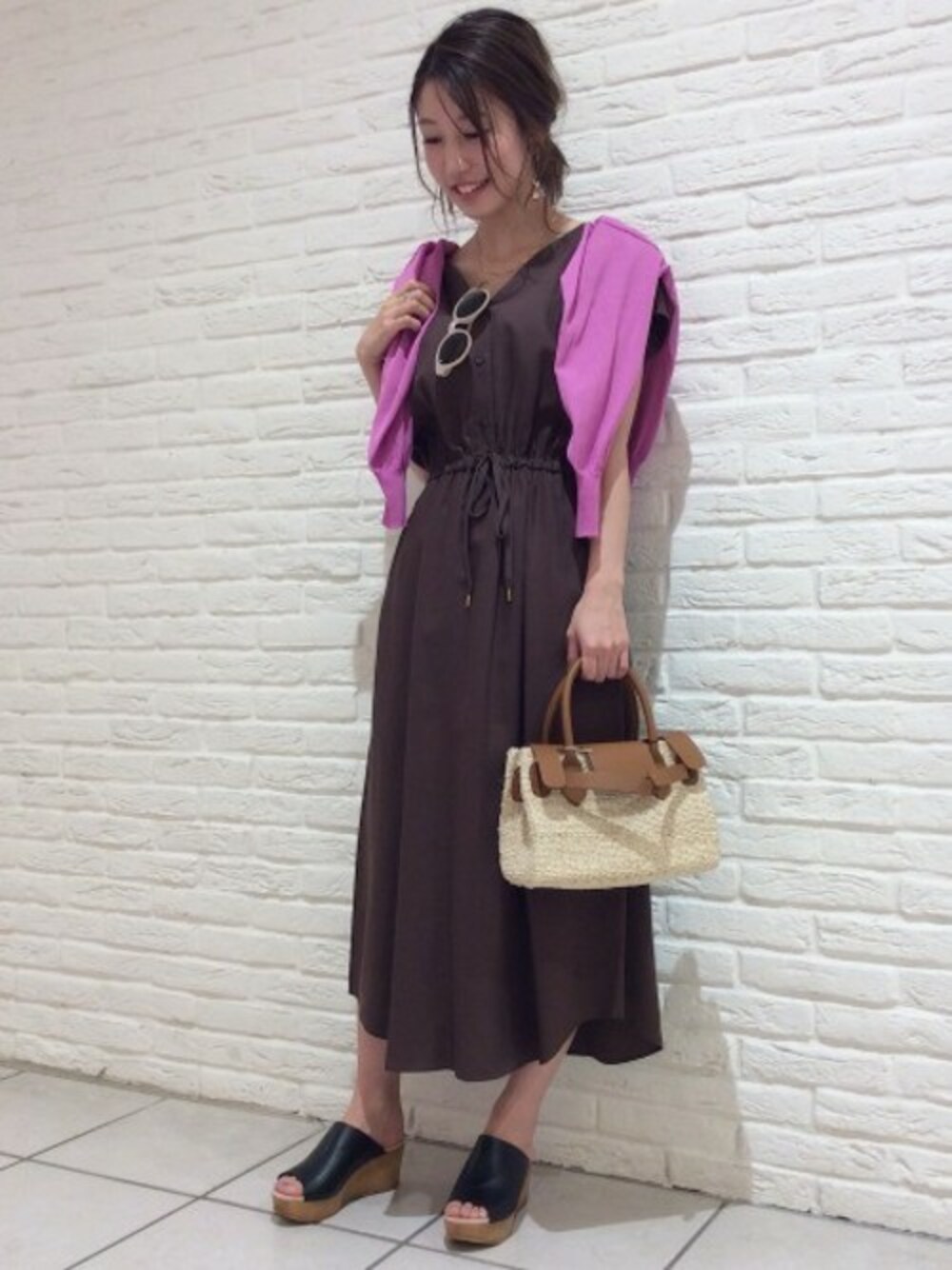 ブラウン×ピンクの今年らしいコーデです。