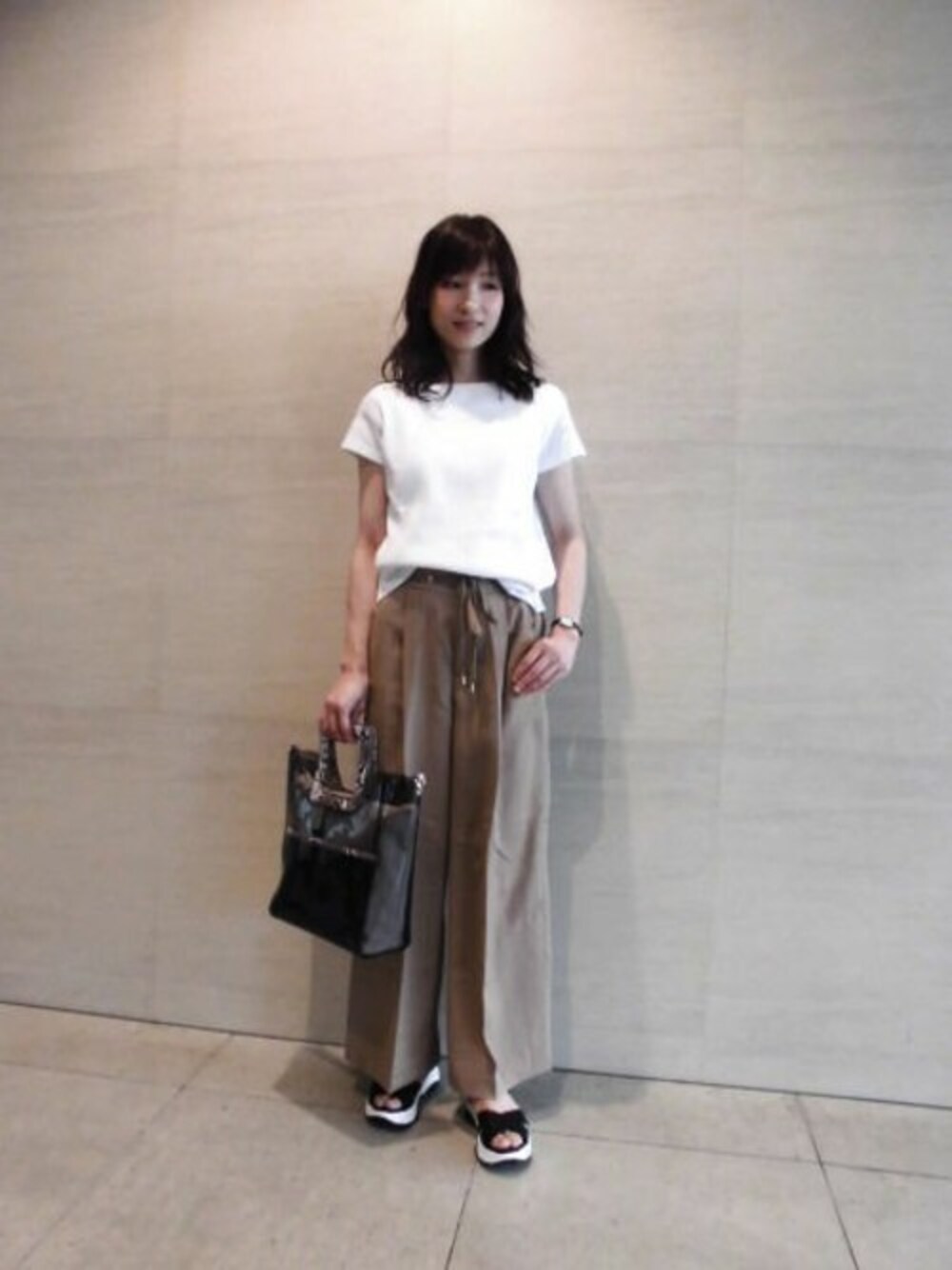 歩く度に揺れる裾スリットで女性らしい柔らかさが・・・ トップスに着たワッフルプルオーバーは、前後逆に着ることもでき違う印象で着こなせます