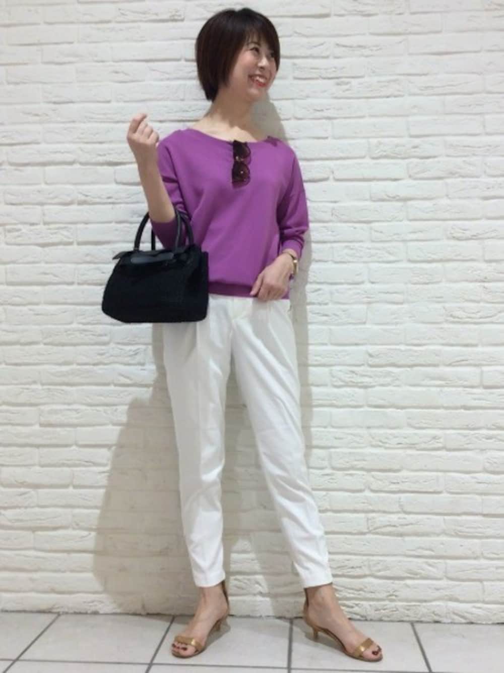 トップスは、セットアップ商品(店舗限定)のカーディガンを使用。 2Wayカーディガンなのでボタン側を後ろにしています。