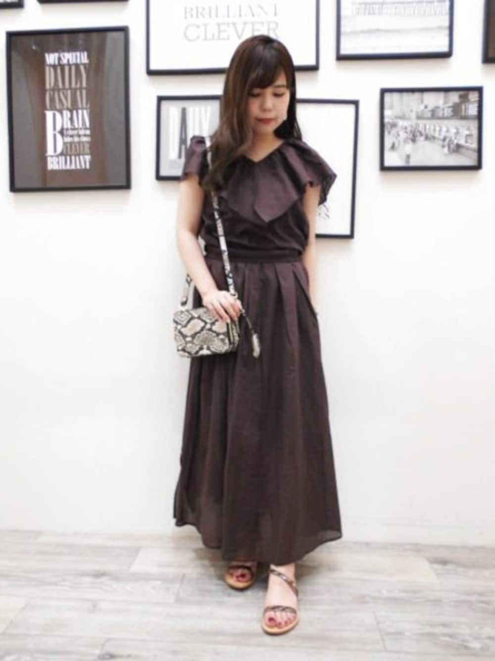 リネンのトップスとスカートはセットアップになります。 ブラウンは今年っぽく着こなせます。 パイソンと合わせるのも◎