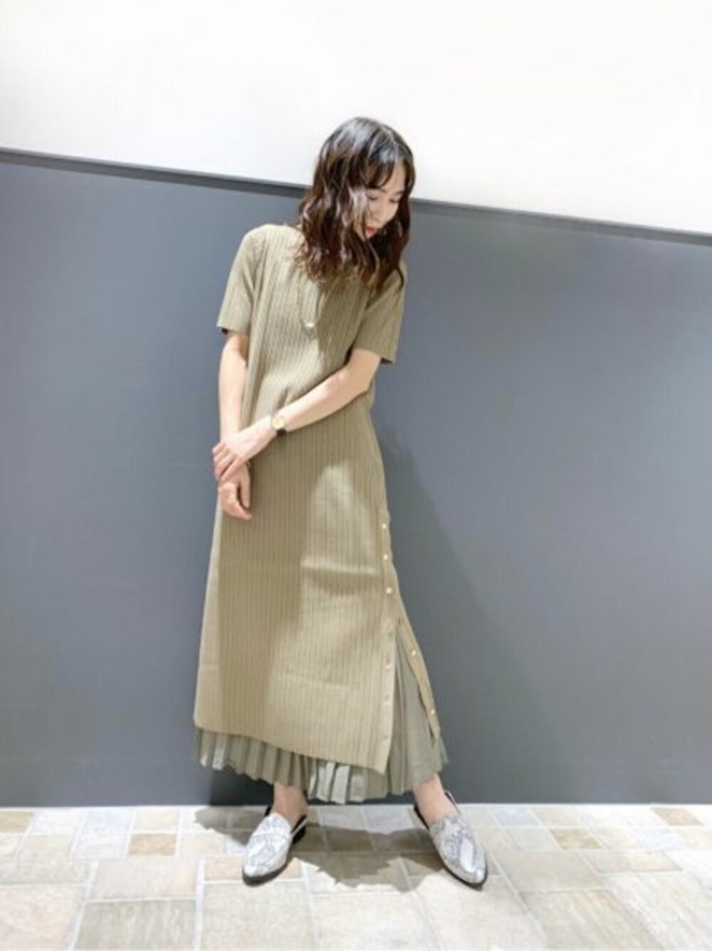 ≪WEB限定≫ リブのワンピースとプリーツスカートがセットになった、WEB限定アイテムです! 明るめの優しいカーキなので、暖かくなってきた今の時期にも着やすいカラーです。 デニムやワイドパンツと重ねてもかっこよく決まります♪