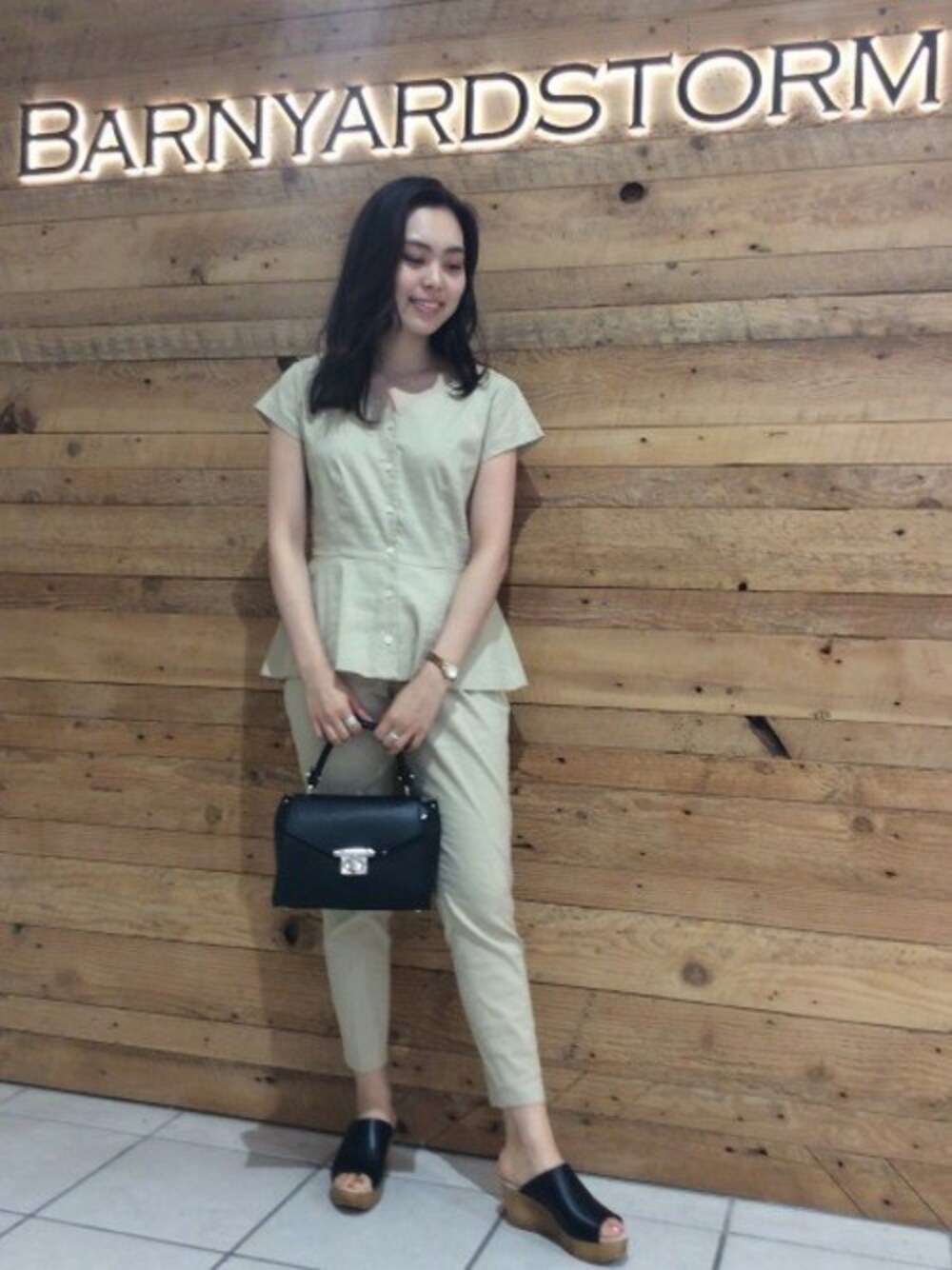 ブラック×ベージュでワントーンに 麻素材なので夏にぴったりです!