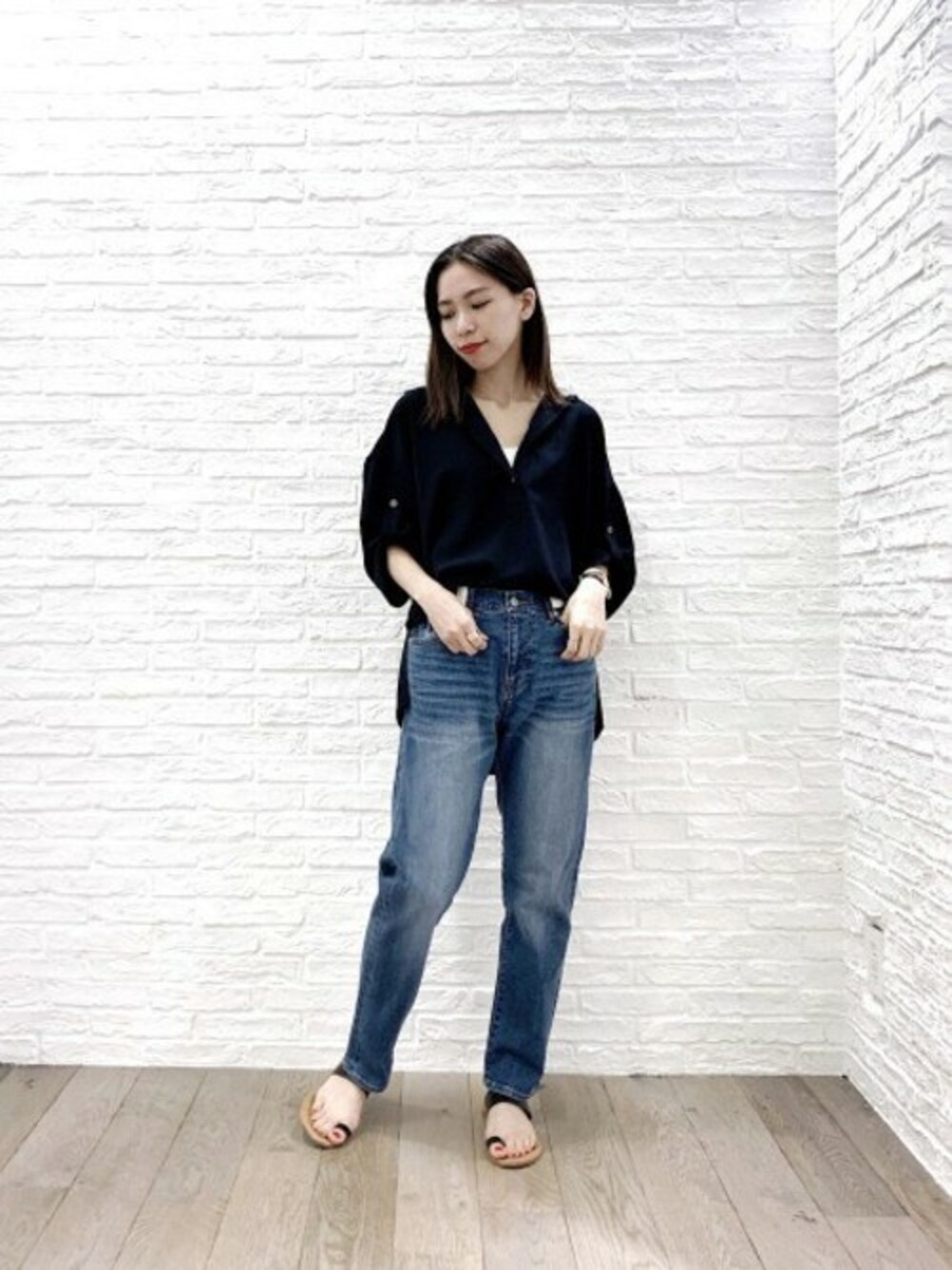ベーシックですが新しい形のストレートデニムです。 シンプルですが形がきれいです。