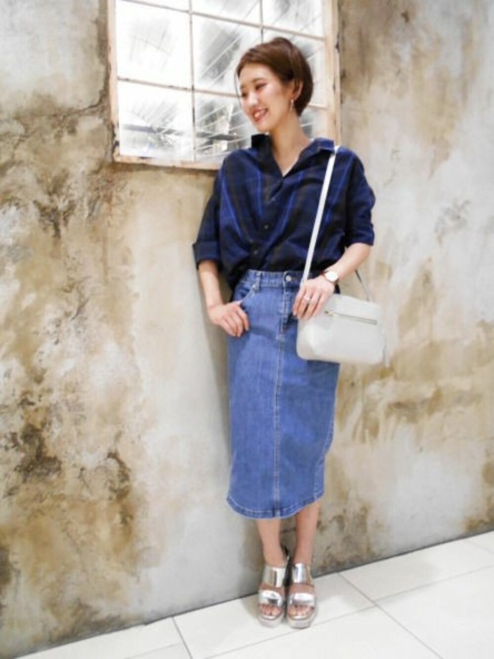 ブルー系でまとめた爽やかコーデです。 チェックのシャツは薄手なので秋まで活躍します♪