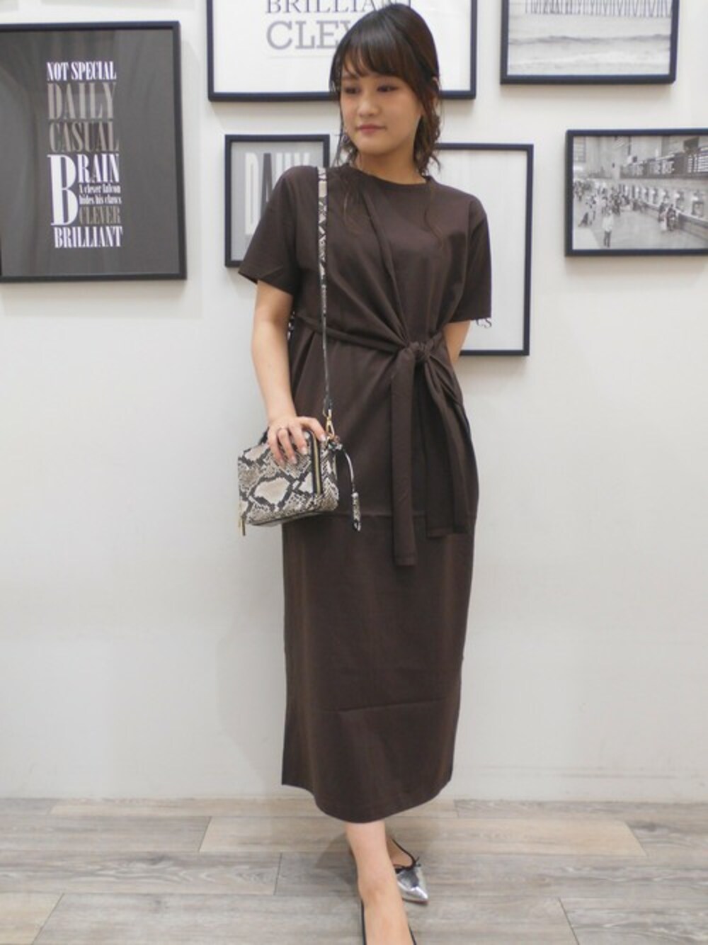 ブラウンカラーで秋も着れるワンピースです。 1枚で着ても、結びがポイントになるので便利です。