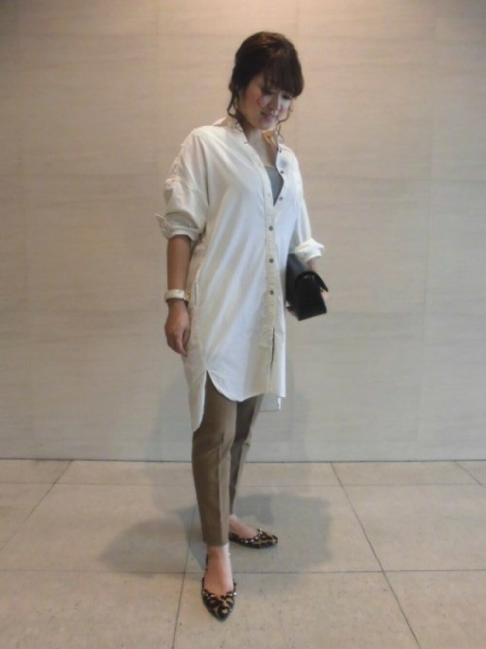 昨年も大人気だったホソコールのシャツを今年は抜き襟で☆ トレンドのキャメルのパンツと合わせて、大人カジュアルの出来上がり♪
