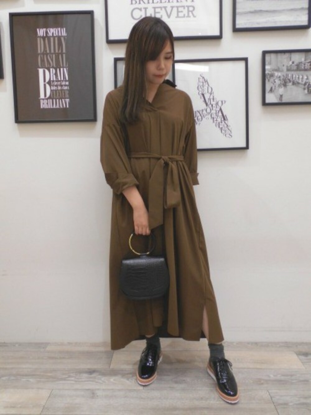 さらさらとしたロングワンピースは1枚でも、 パンツやレギンスとレイヤードでも着れるので 気温によってコーデを変えて楽しめます。 ブラウンはこれ1枚でトレンド感のある雰囲気に。