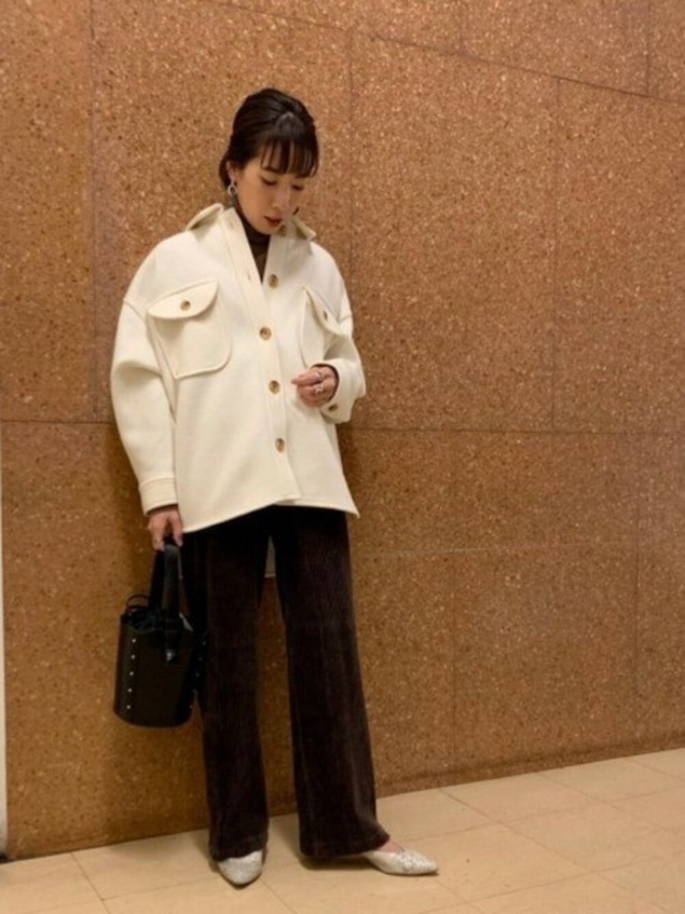 生地のしっかりとしたCPOジャケットを羽織るとトレンド感のあるスタイルに、 簡単に仕上がります。 ボトムに抜け感があってもきちんとして見えます。