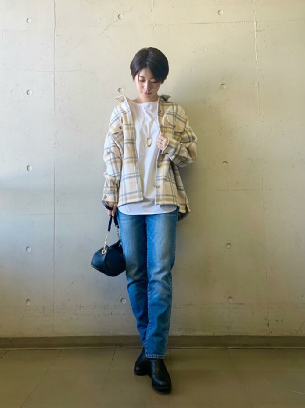 ロンT×デニムのシンプルコーデにCPOシャツを羽織りました。 ハリのあるしっかりとした素材なので、キレイなシルエットに決まります♪