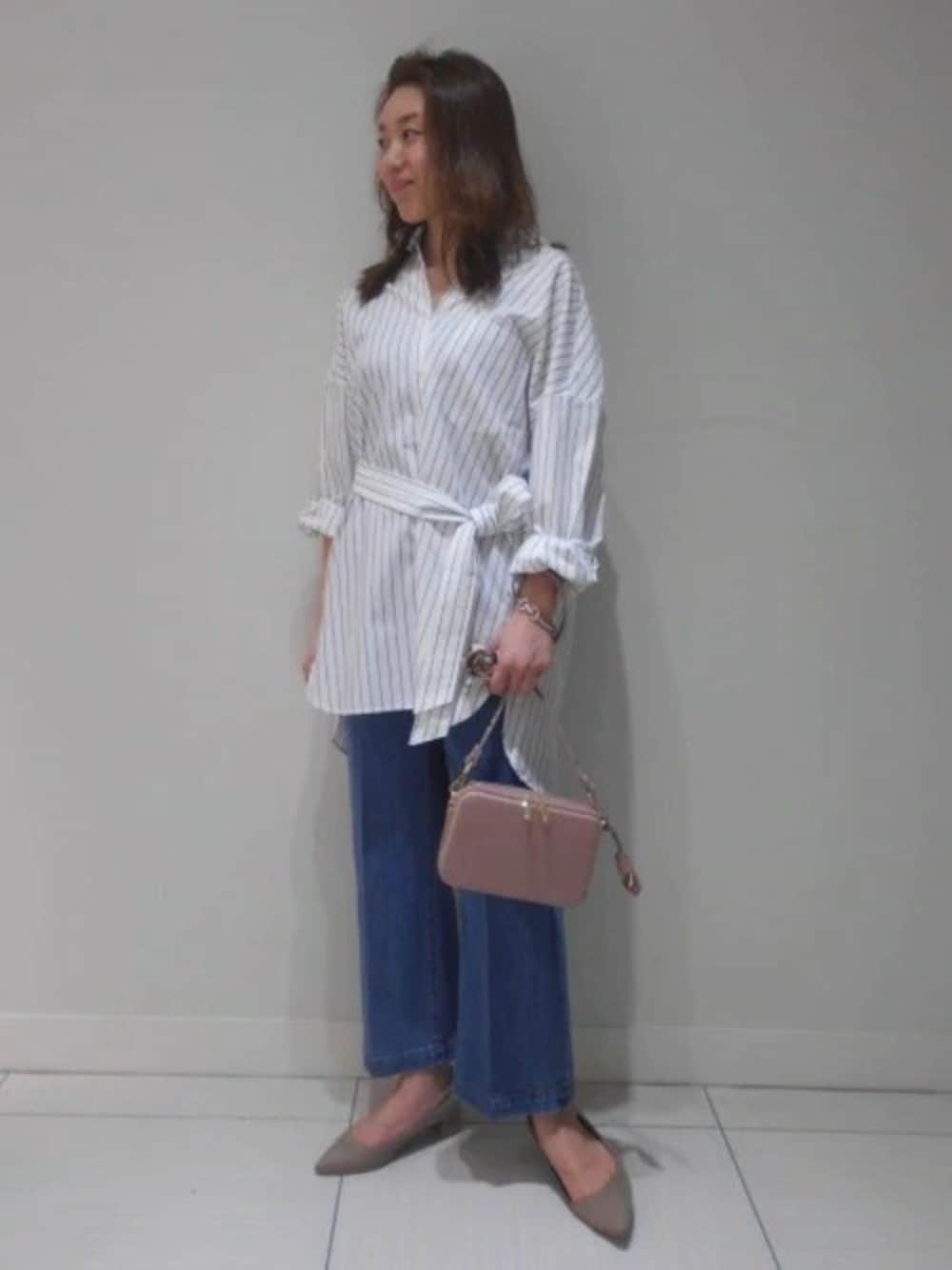 ウエストのベルトをアクセントにして、 雰囲気を変えて楽しめるストライプシャツは羽織としても使えるので 長いシーズンで活躍するアイテムです。