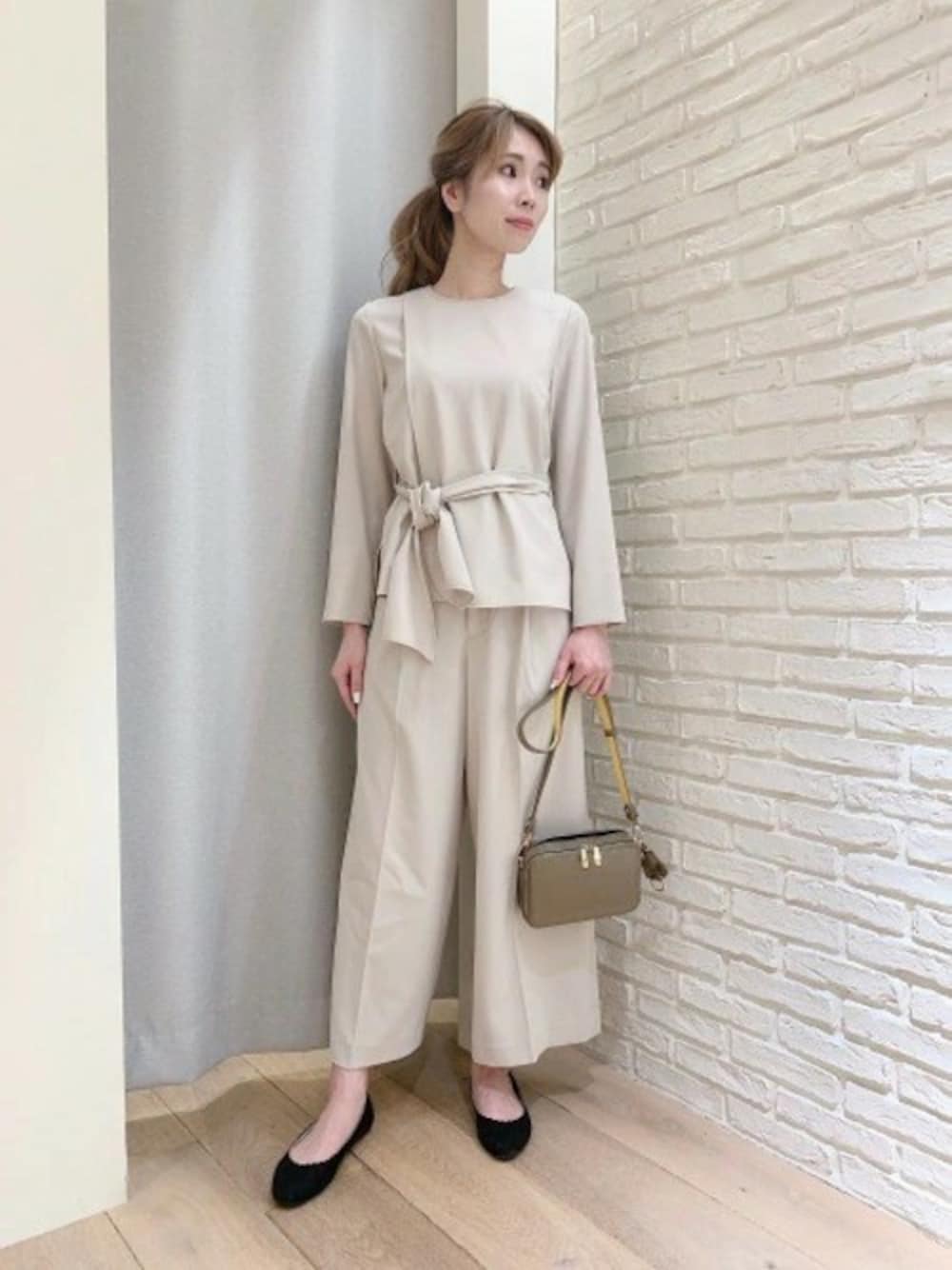ベルトのリボンはタイにもなって、 気分で結び方をアレンジ出来ます。 セットアップで着るときちんと感が出てセレモニーにも。