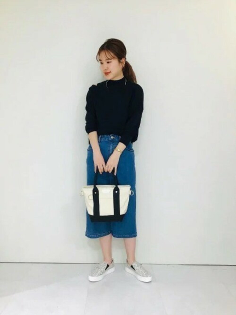 綺麗目アンサンブルはデニムスカートで爽やかに♪ 甘くなりすぎず普段使いできます(^ ^)