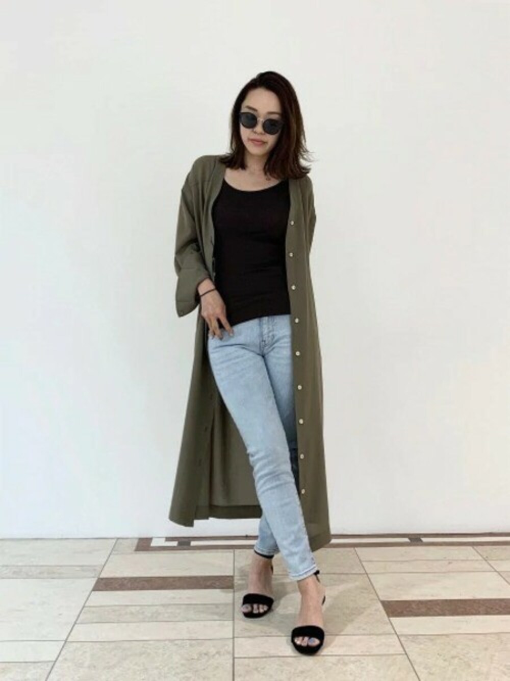 ワンピースは夏の羽織としても活躍します。 カーキは夏のカラーとの相性も○